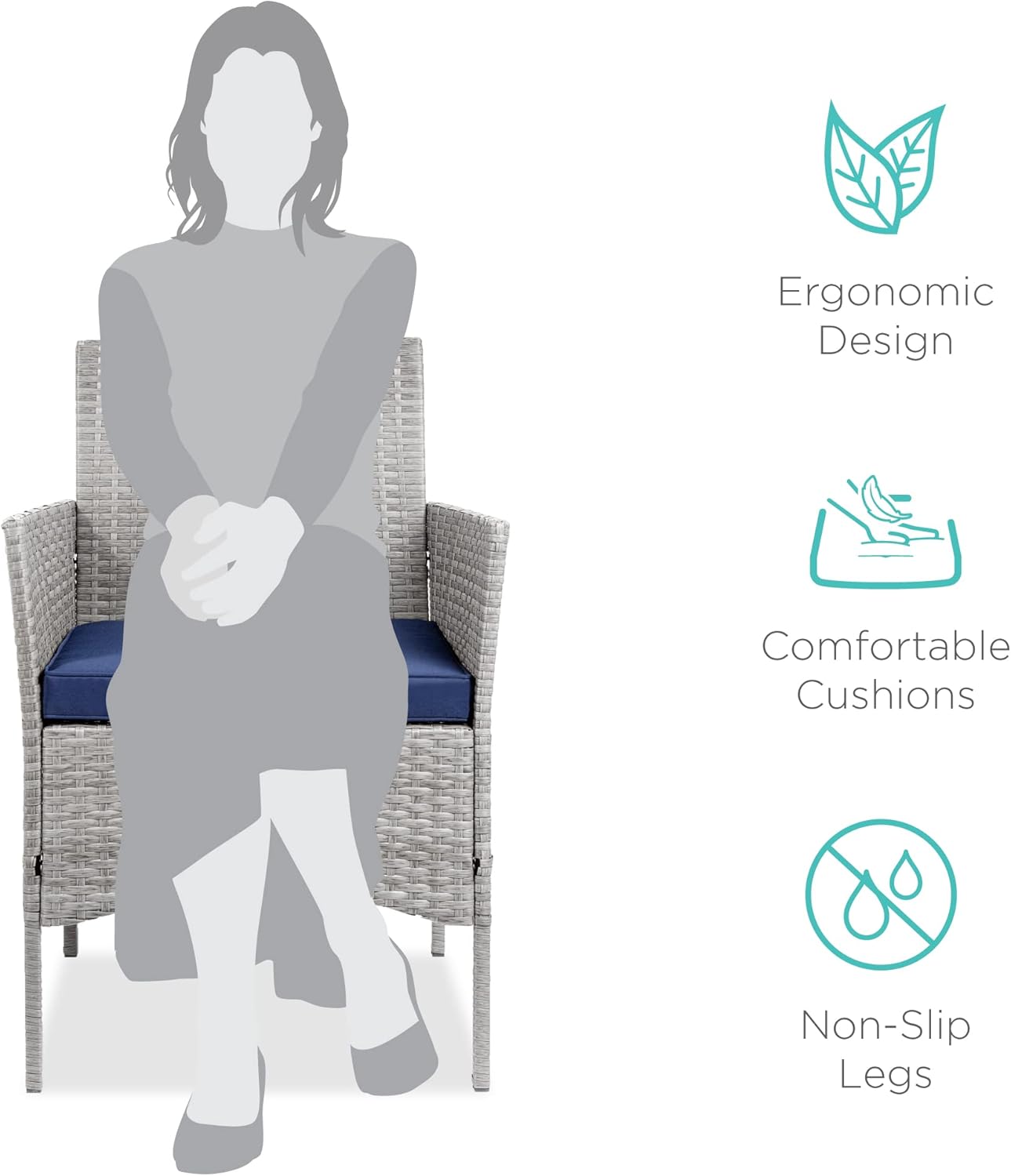 The Best Choice Products 3-Piece Outdoor Wicker Conversation Bistro Set is the perfect addition to any garden or patio space. This space-saving patio furniture set includes two comfortable chairs and a convenient side table, making it ideal for enjoying a cup of coffee or having a casual conversation with a friend. The durable wicker construction is weather-resistant and designed to withstand the elements, while the sleek gray and navy color scheme adds a touch of style to any outdoor space. Upgrade your outdoor living area with this stylish and functional bistro set from Best Choice Products.